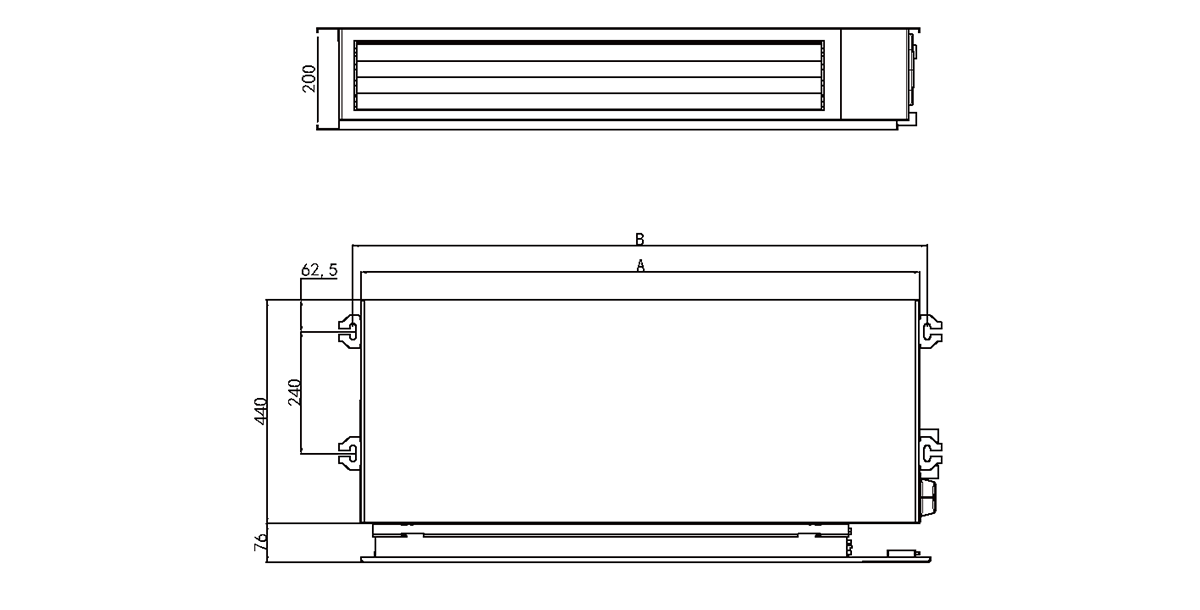 Steel drain pan with powder coating for easy cleaning and corrosion resistance, anti-rust. The drain pan is insulated to prevent condensation water.