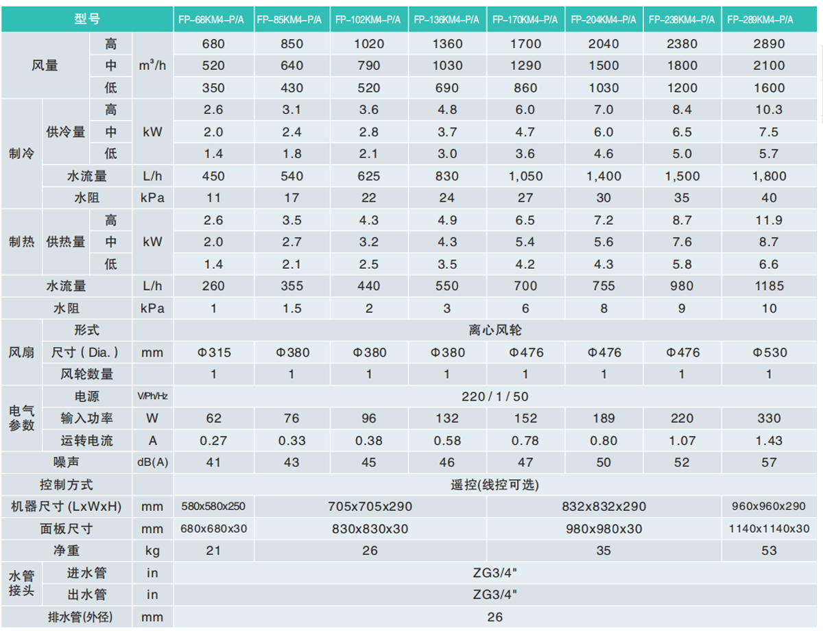 四管制四出風(fēng)卡式風(fēng)機(jī)盤管A系列